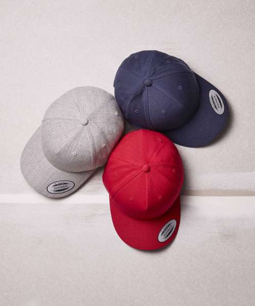 5-panel cap with snapback closure, colour-matching snapback closure, one size fits all, made of acrylic and a wool content, 8-fold quilted, pre-bent visor, 5-panel shape.